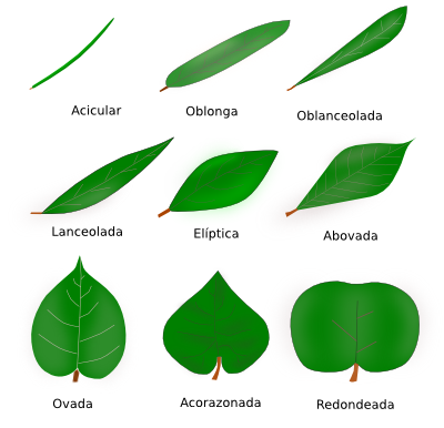 - Ovalada, lanceolada, acorazonada, lineal, etc.