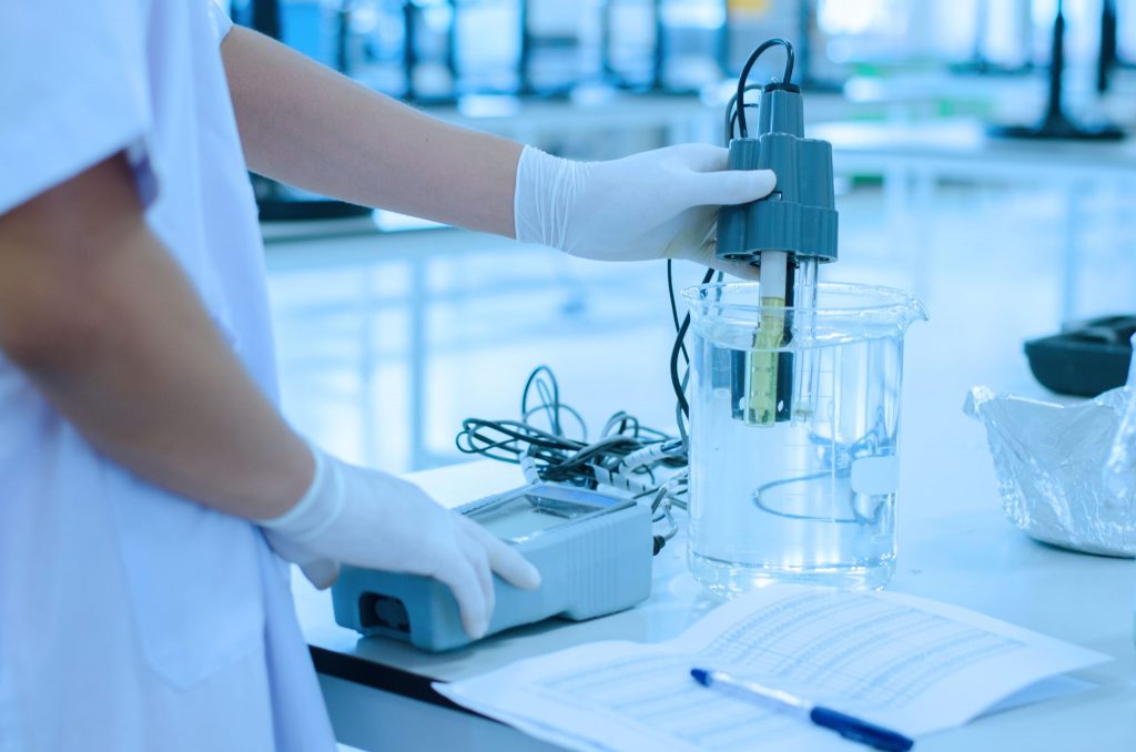 Un instrumento de alta precisión que mide el potencial eléctrico generado por los iones H⁺ en la muestra.
