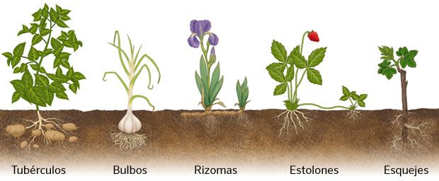 🌱 Tallos subterráneos (parecen raíces, pero no lo son)